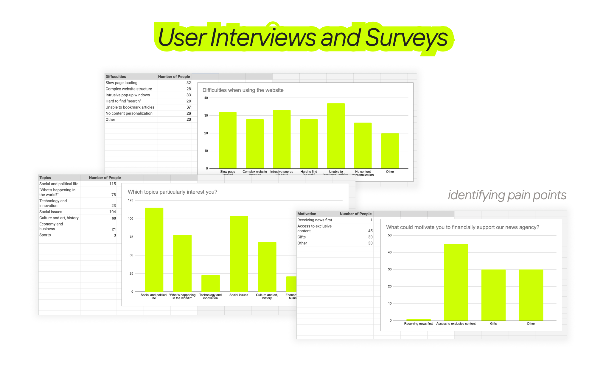 At INSAIM, we combine both qualitative and quantitative research to identify pain points and gain a real user perspective on the product. For instance, while developing a website for a digital news agency, we conducted a series of interviews and questionnaires to gather detailed feedback on areas for improvement.